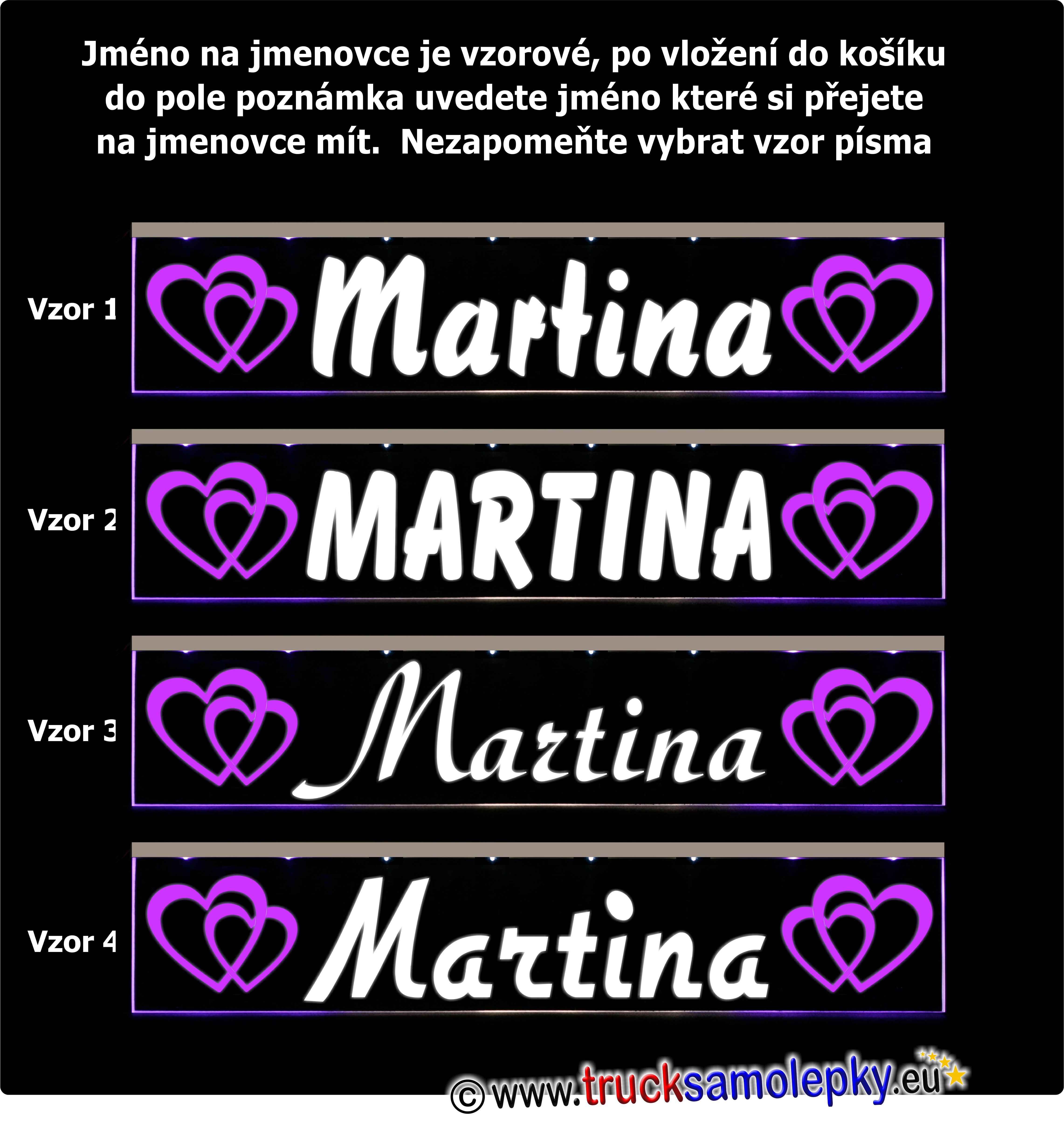 V objednávce do pole poznámka uveďte jméno nebo nápis, který si přejete na jmenovce mít
